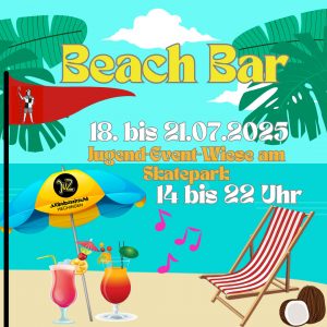 Auf der Jugend-Eventwiese beim Skatepark am Kinderfest @kinderfest.hechingen gibt es dieses Jahr wieder eine JUZ-Beachbar von Freitag, 18. bis Montag, 21.Juli und sie öffnet für euch von 14 Uhr bis 22 Uhr! 🥳