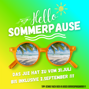 Wir machen eine 🌞Sommerpause und das Jugendzentrum ist geschlossen von Donnerstag, 31.Juli